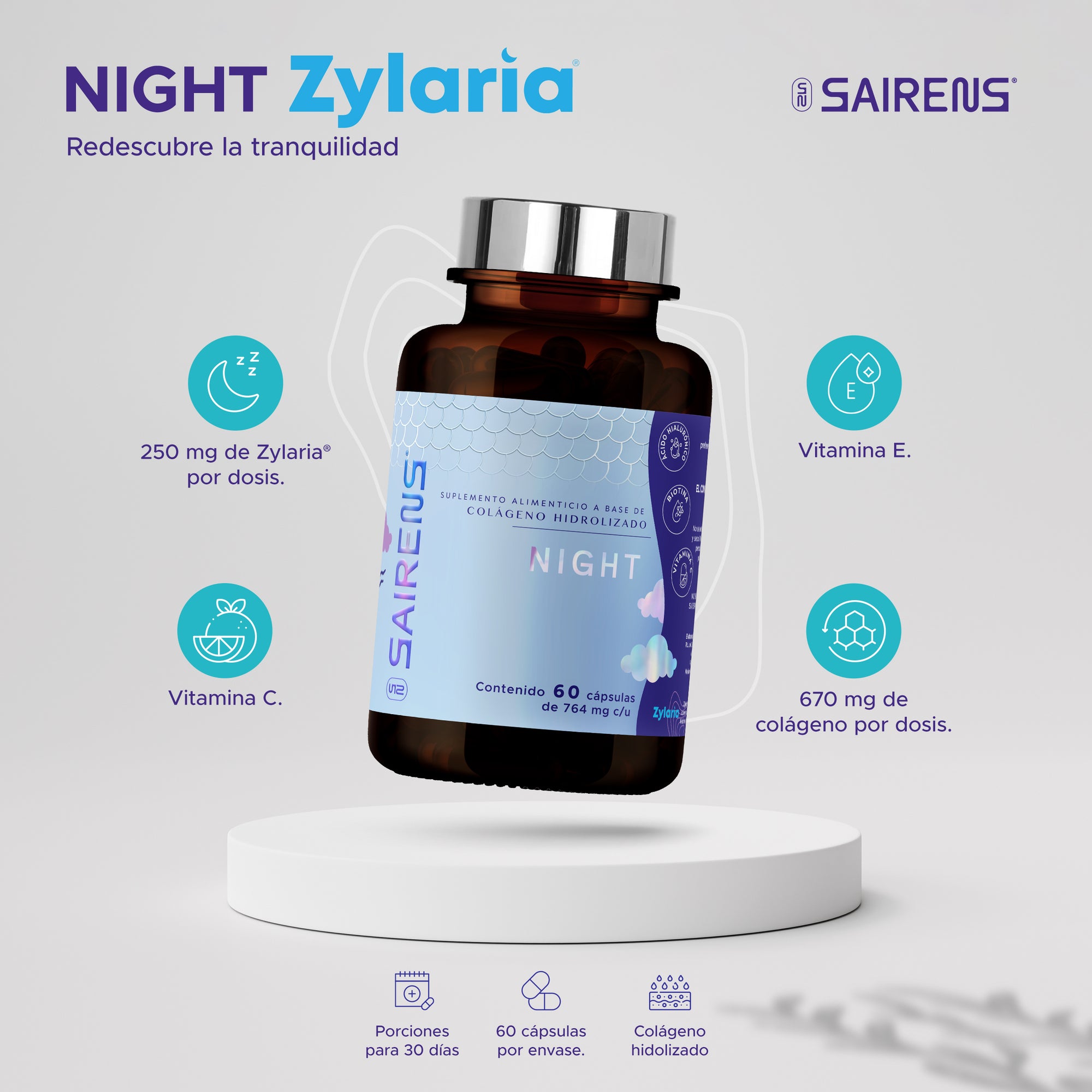 Descubre NIGHT de SAIRENS, el suplemento alimenticio diseñado para apoyar tu bienestar integral.